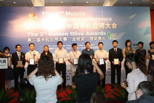 代表阿帕比領(lǐng)取第二屆手機應用大賽“金枝獎”