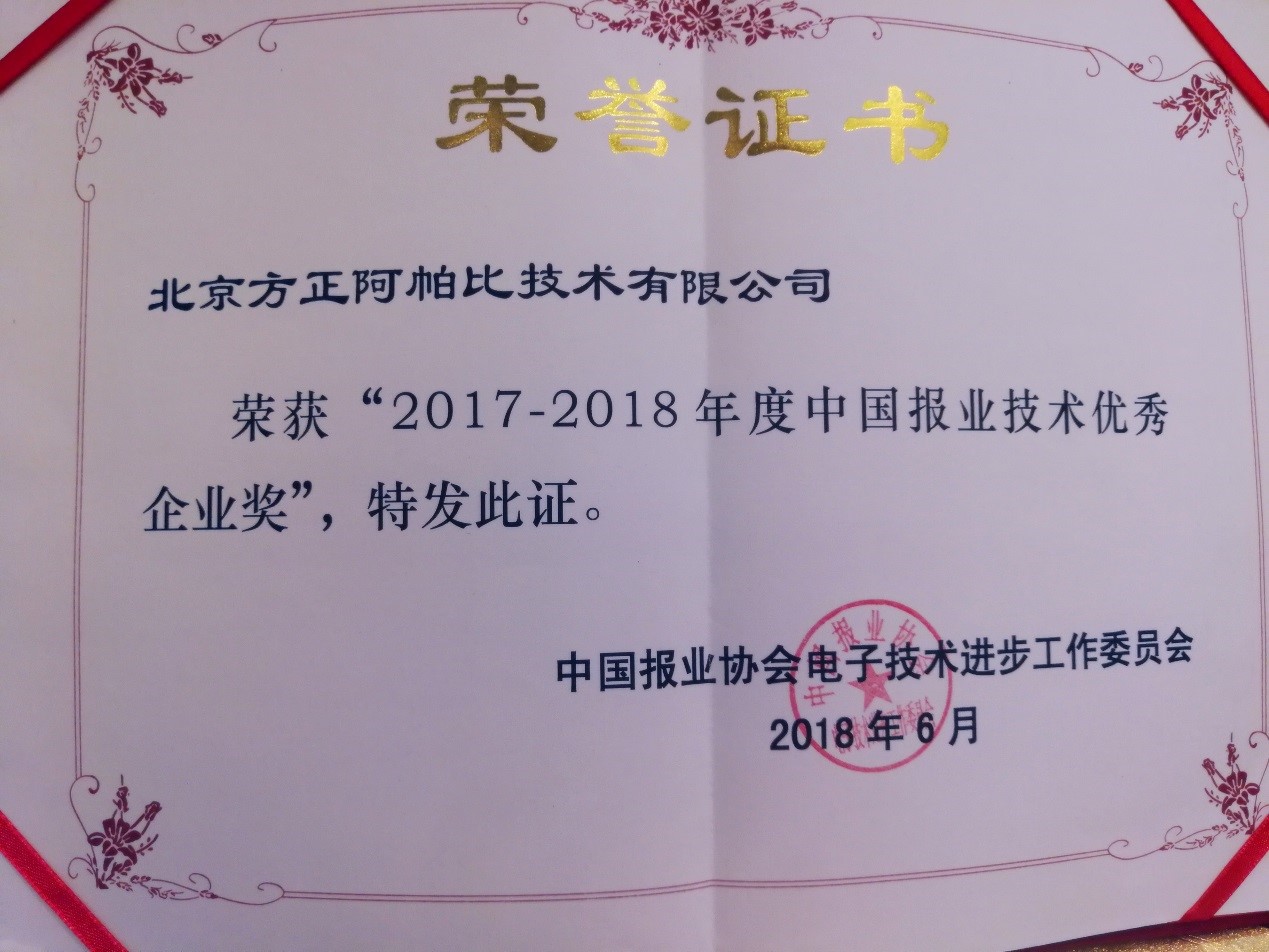 人工智能開(kāi)啟數字報業(yè)新升級——方正阿帕比榮膺“年度中國報業(yè)技術(shù)優(yōu)秀企業(yè)獎”